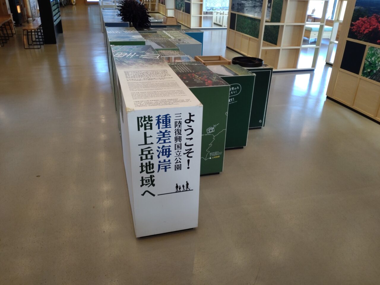 種差海岸インフォメーションセンターは、青森県八戸市にある種差海岸の観光情報を提供する施設です。このセンターは、種差海岸や三陸復興国立公園に訪れる観光客に向けて、地域の自然、文化、観光資源を紹介し、快適な観光体験をサポートする役割を担っています。インフォメーション内には、東京海洋大学客員教授として魚類研究で有名なさかなクンが描いた「三陸ジオパーク」の絵も展示されています。